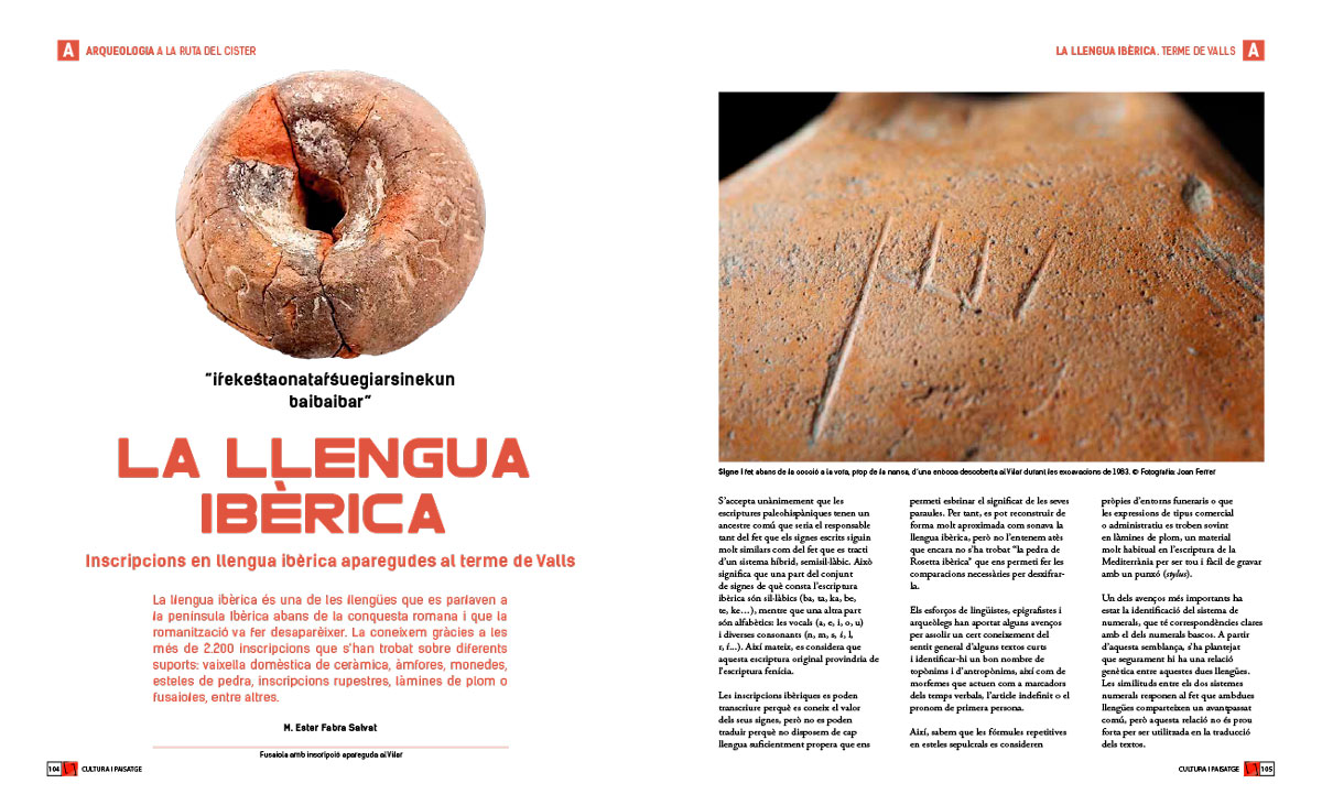 La llengua ibèrica és una de les llengües que es parlaven a la península Ibèrica abans de la conquesta romana i que la romanització va fer desaparèixer. La coneixem gràcies a les més de 2.200 inscripcions que s’han trobat sobre diferents suports: vaixella domèstica de ceràmica, àmfores, monedes, esteles de pedra, inscripcions rupestres, làmines de plom o fusaioles, entre altres.