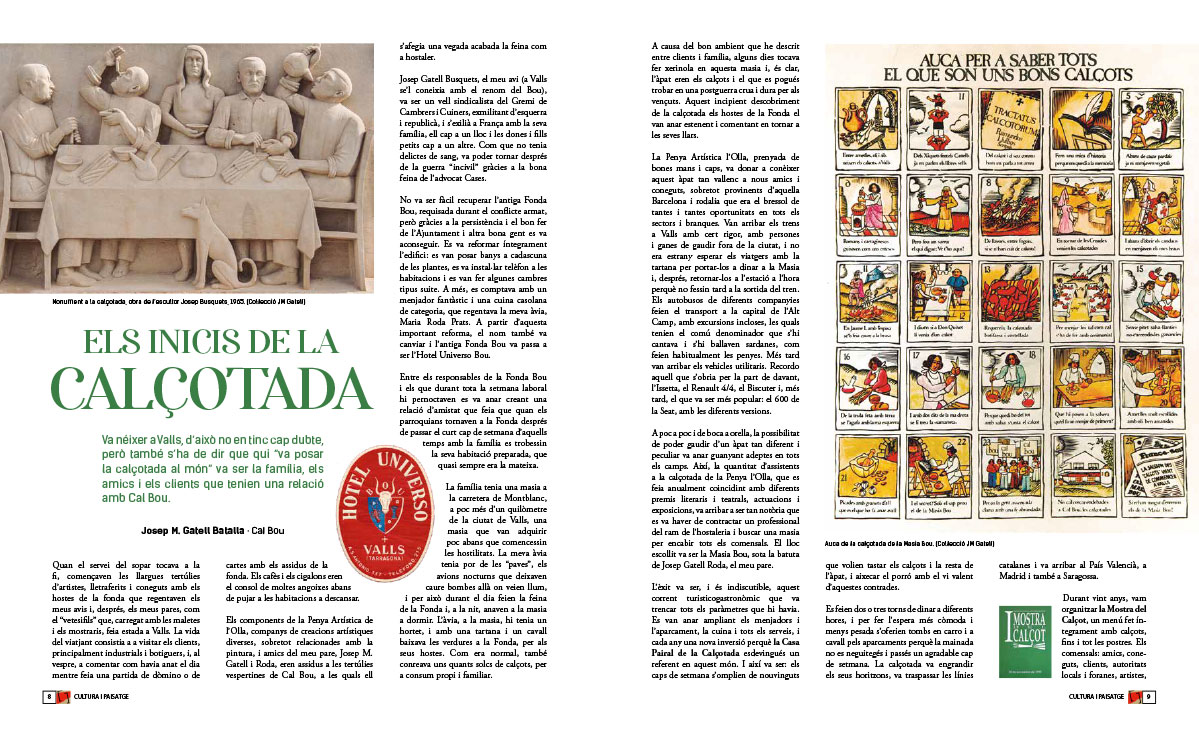Va néixer a Valls, d’això no en tinc cap dubte, però també s’ha de dir que qui “va posar la calçotada al món” va ser la família, els amics i els clients que tenien una relació amb Cal Bou.